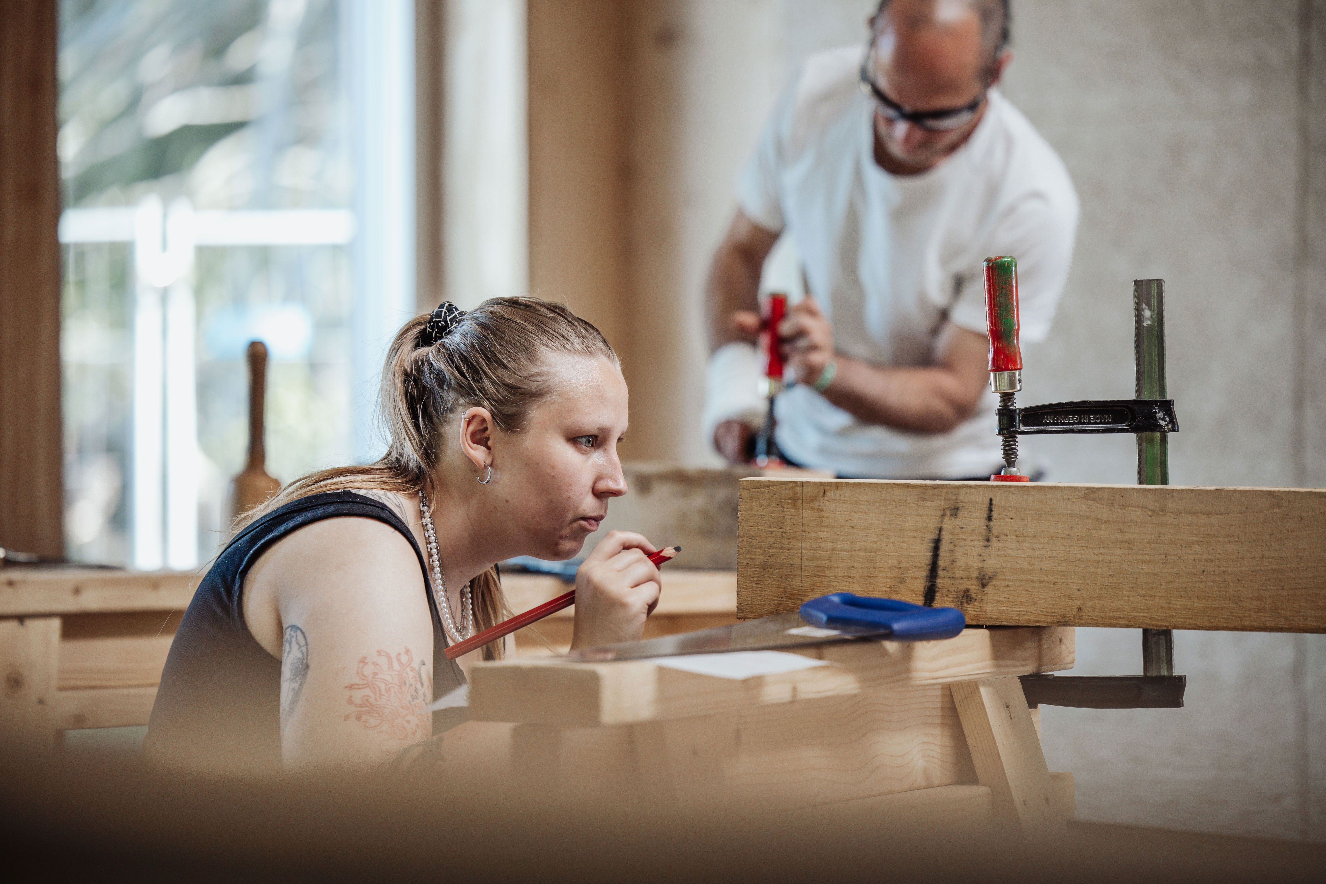 Også Green Skills Camp har sat tydelige spor i Herningsholms nybyggede tømrerværksted, hvor bæredygtigt byggeri har været omdrejningspunktet.