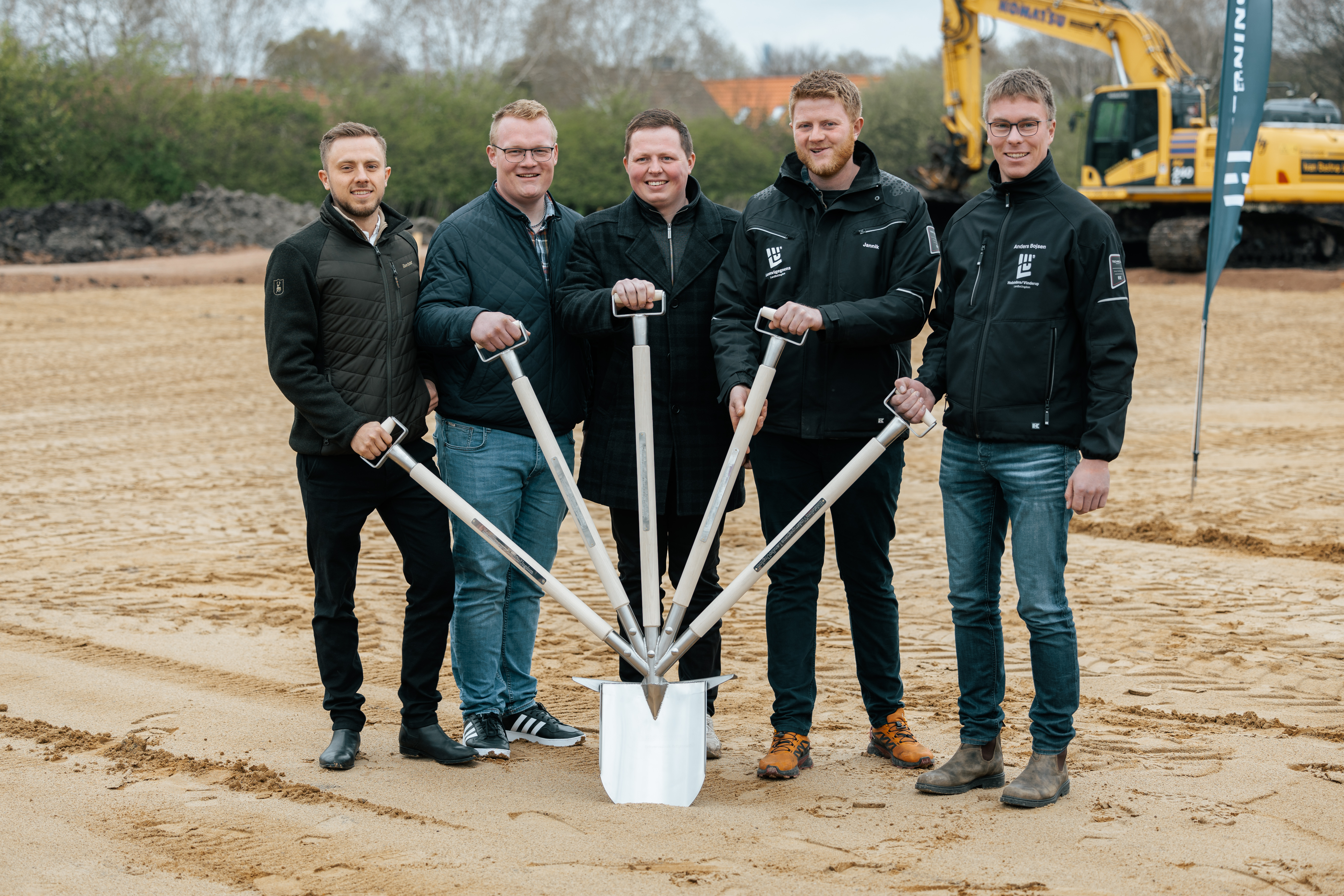 Én spade, fem håndtag og samme antal repræsentanter for LandboUngdom i Midt- og Vestjylland. I fællesskab blev første spadestik taget fredag formiddag til byggeriet af Agroskolens nye hovedkvarter i Herning.