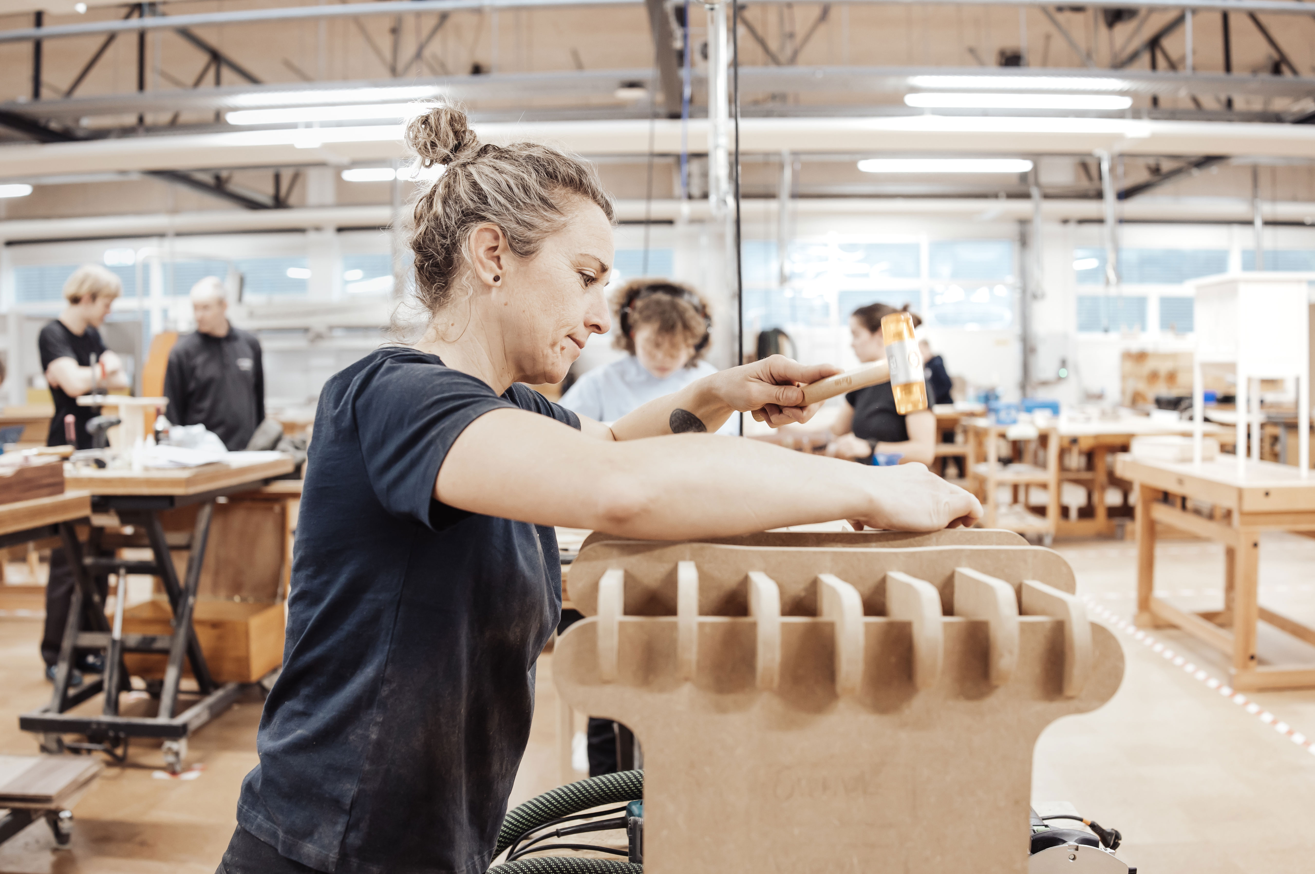 ”Jeg interesserer mig meget for multifunktionelt design og udendørsliv. Det ville jeg gerne kombinere med den danske hyggetanke om enkelthed og komfort,” forklarer Giovanna, der tidligere har arbejdet med CNC-programmering, men aldrig før har prøvet at betjene maskinen.