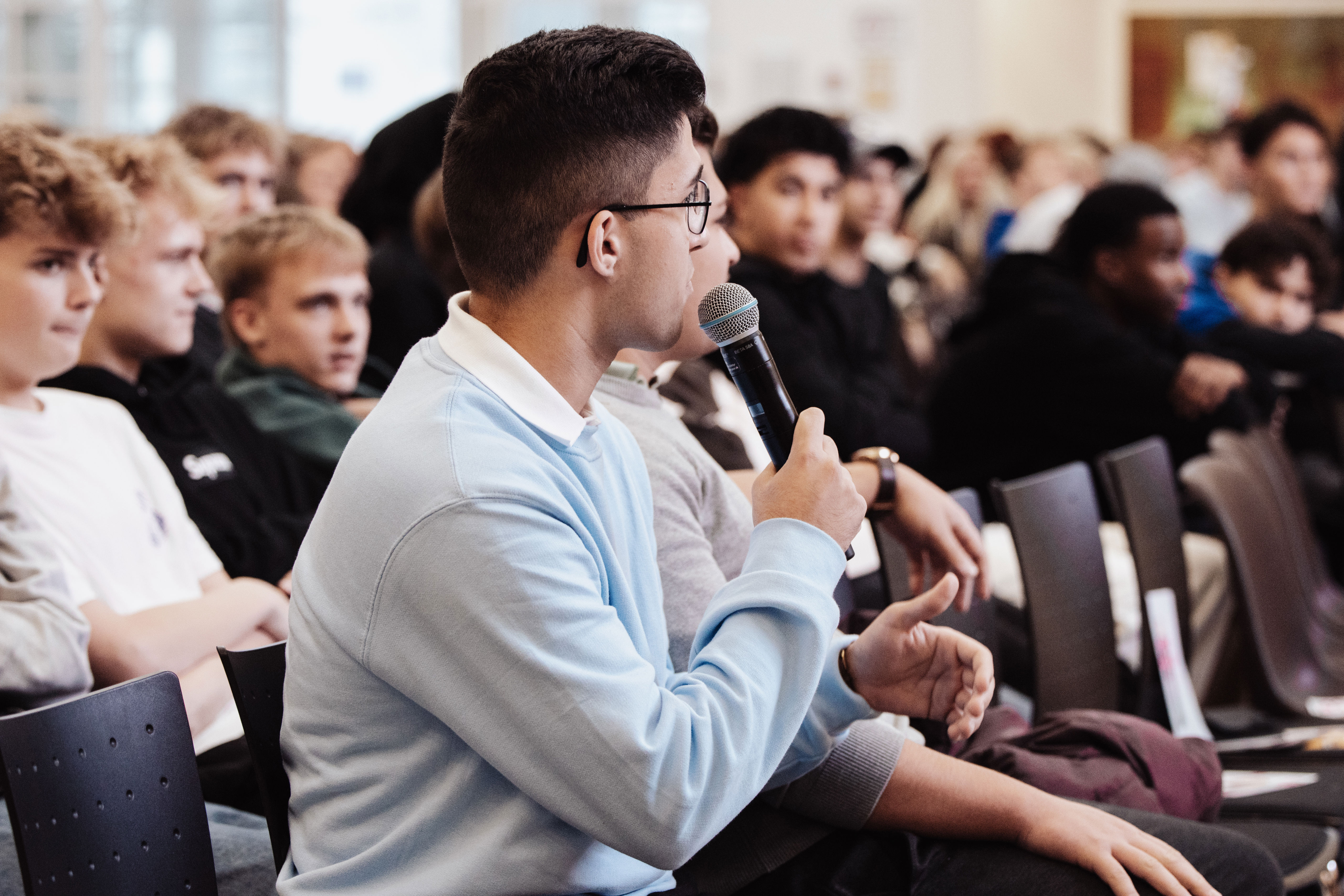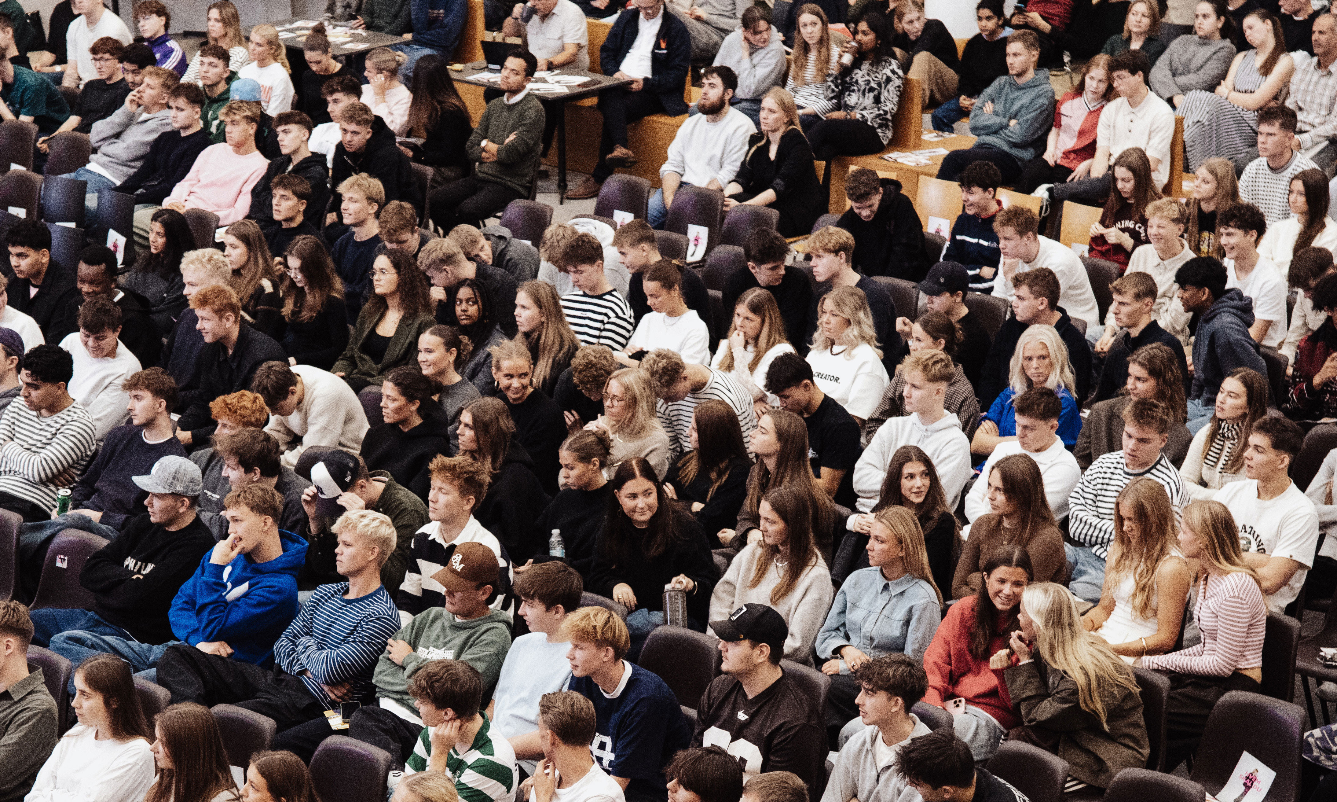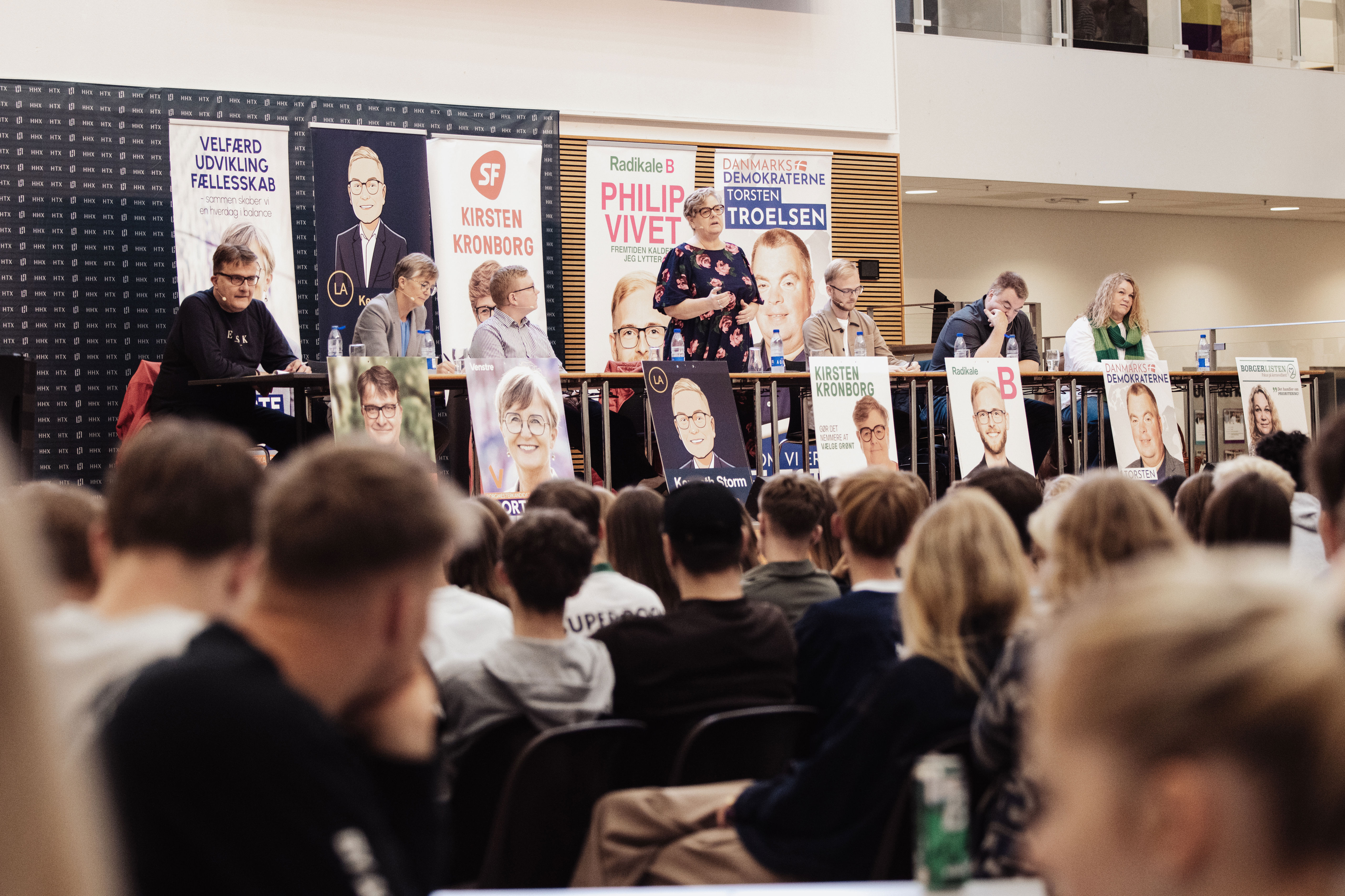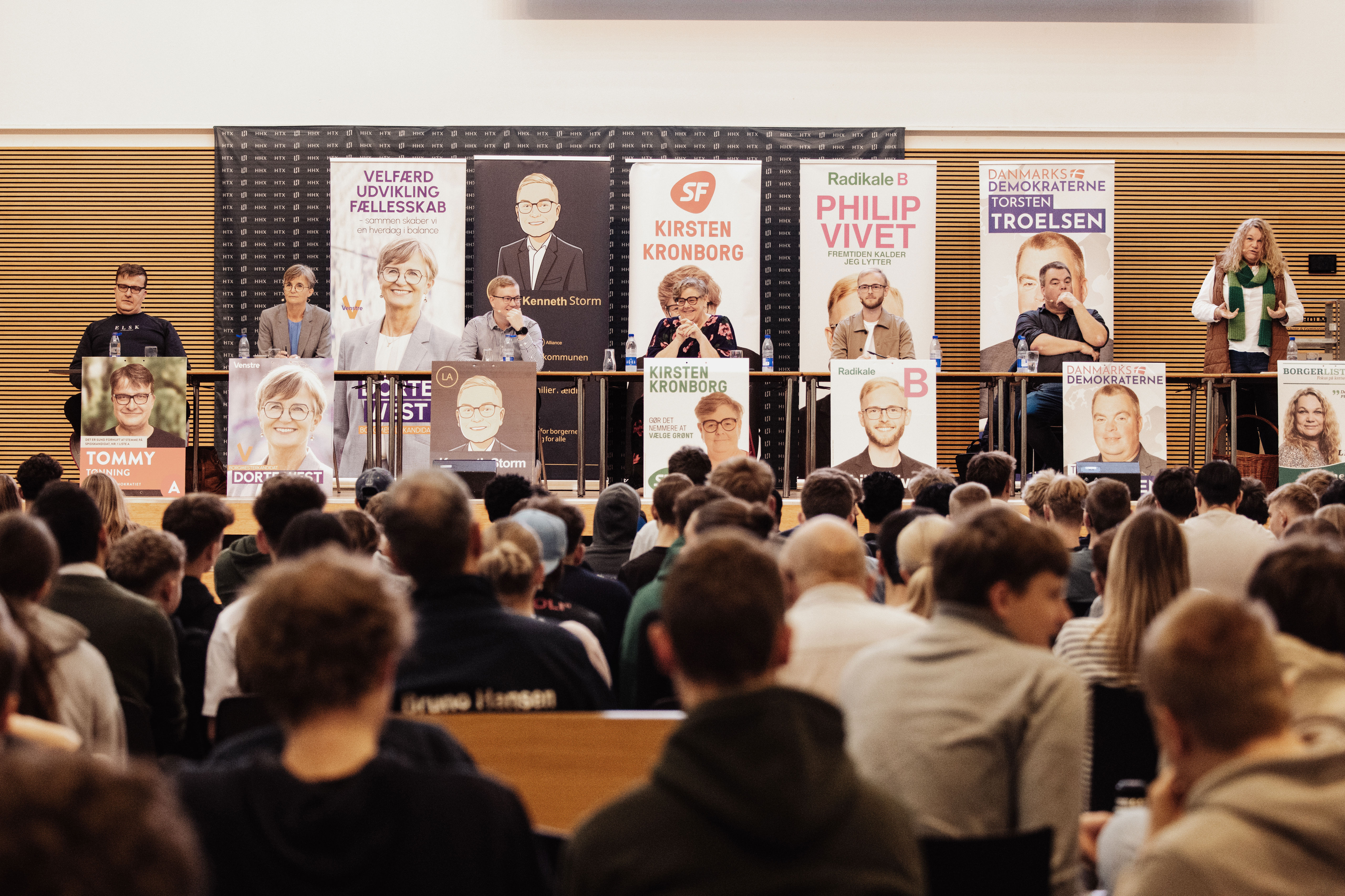 Det summede af aktivitet, da omkring 900 elever fra HTX og HHX på Herningsholm Erhvervsskole & Gymnasier samledes til debat – og engagementet var stort. Hænderne røg i vejret, og spørgsmålene stod i kø til de syv kommunalpolitikere på scenen. For mange af eleverne var det første gang, de stod over for at skulle stemme – omkring en tredjedel af de fremmødte er førstegangsvælgere.