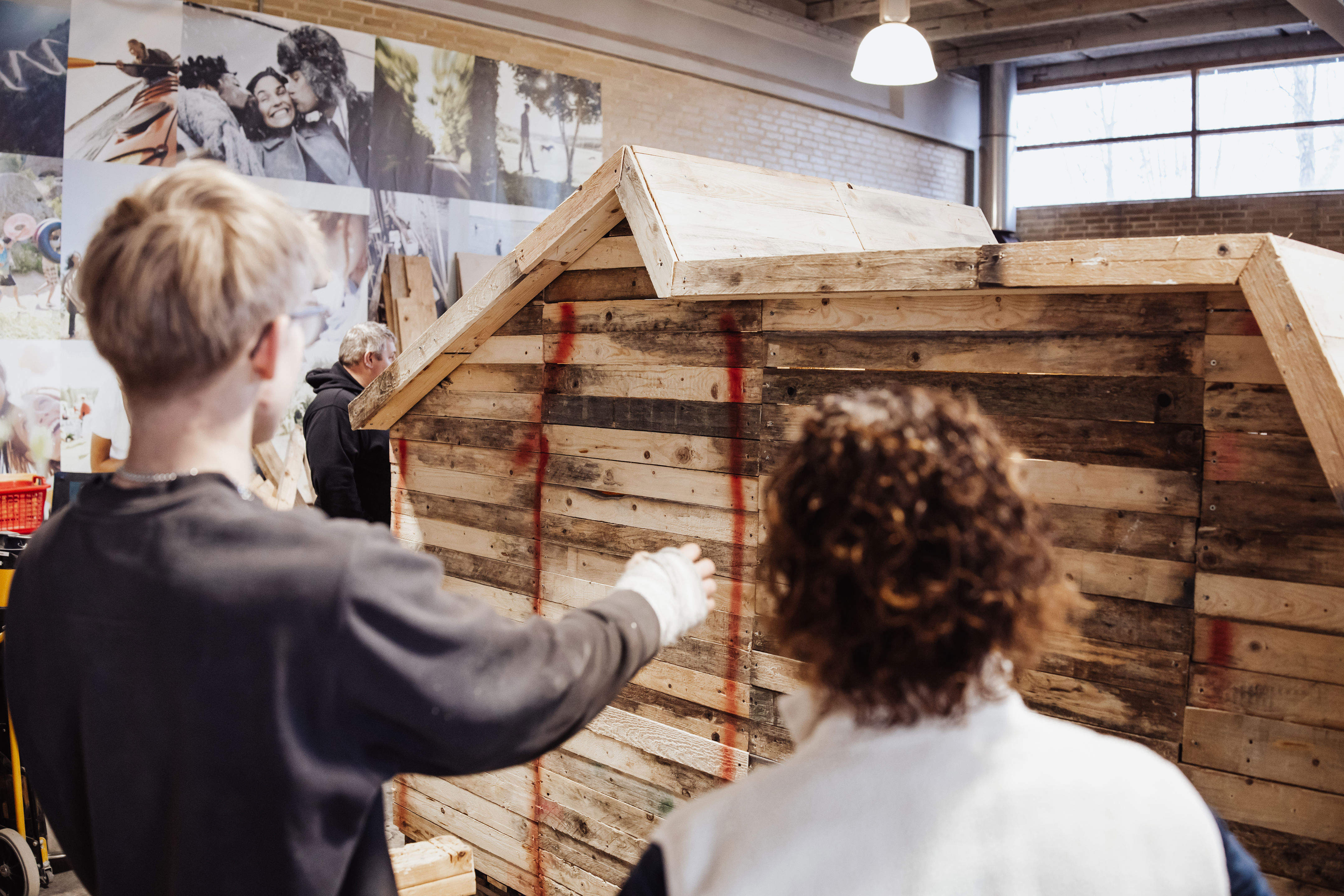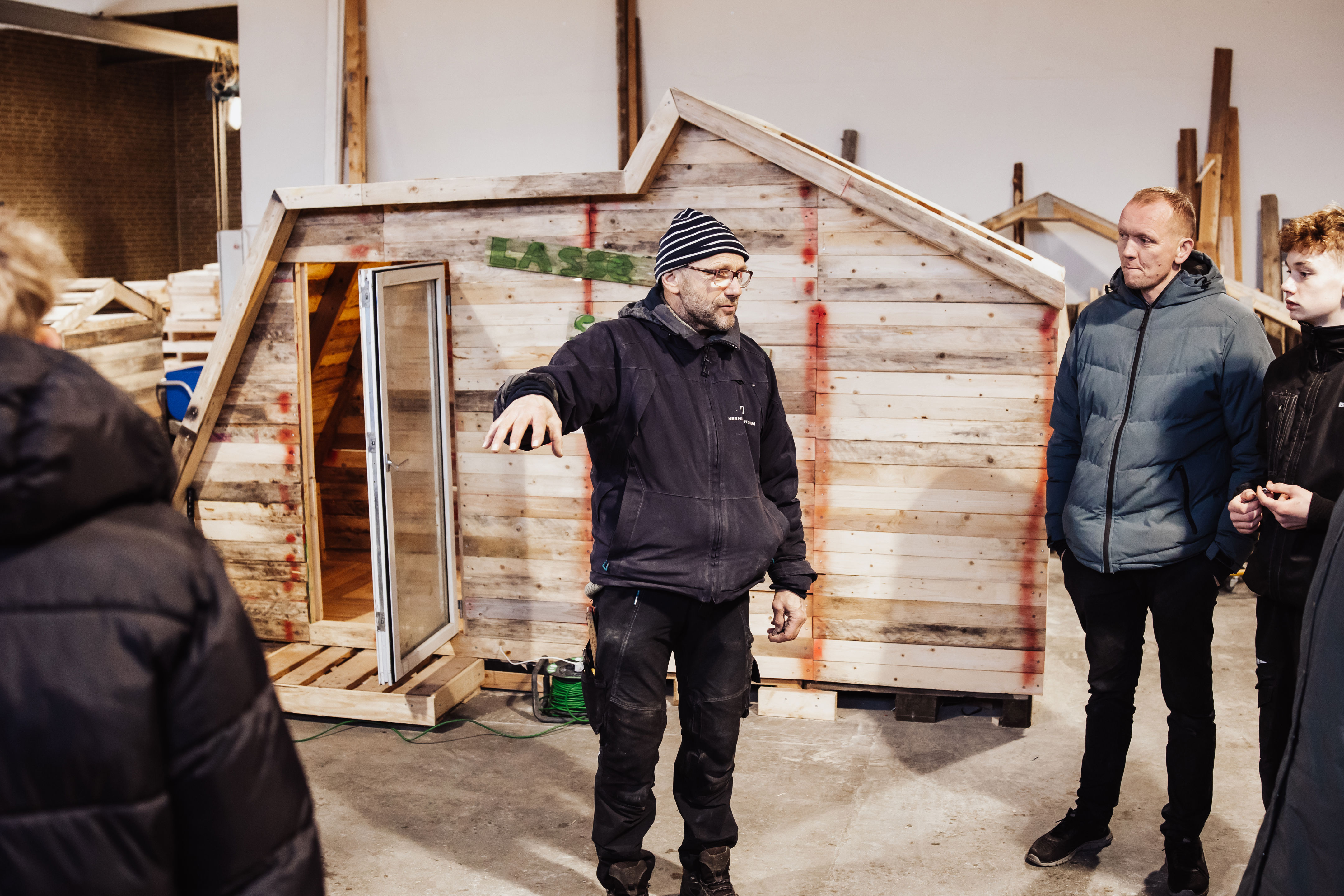 Der blev skruet, savet og finpudset til det allersidste, da eleverne på forløbet Grøn brobygning lagde sidste hånd på deres mini-huse. Husene stod færdige til fernisering i værkstedet, hvor forældre og familier var inviteret indenfor for at se resultatet af elevernes arbejde.