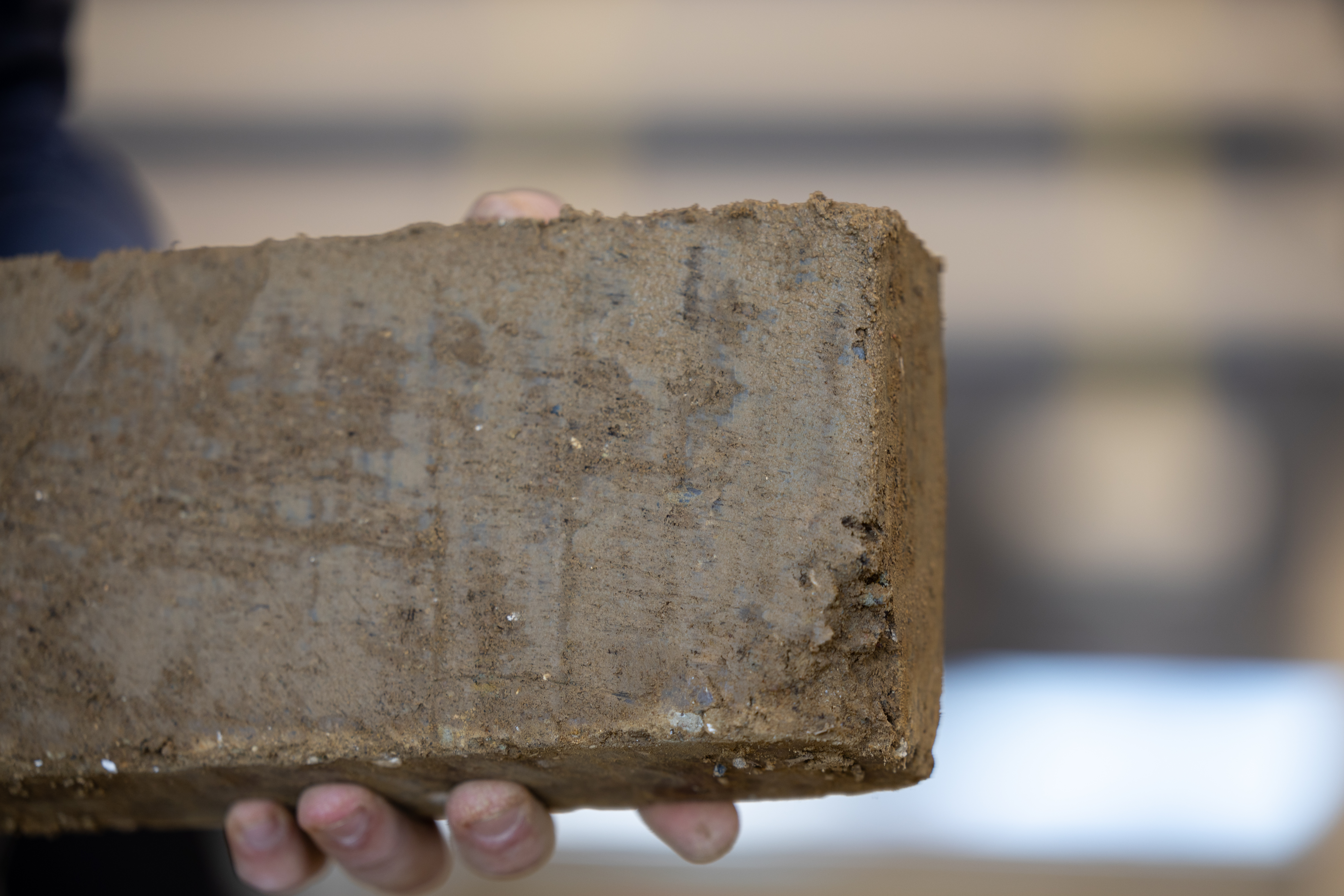 Det er nyt for Jeppe at mure med lersten. Han går på andet grundforløb af mureruddannelsen på Herningsholm Erhvervsskole & Gymnasier, og sammen med de andre murerelever på skolen er de en del af et pilotprojekt i samarbejde med VIHDA, Videnscenter for Håndværk – Design & Arkitektur.