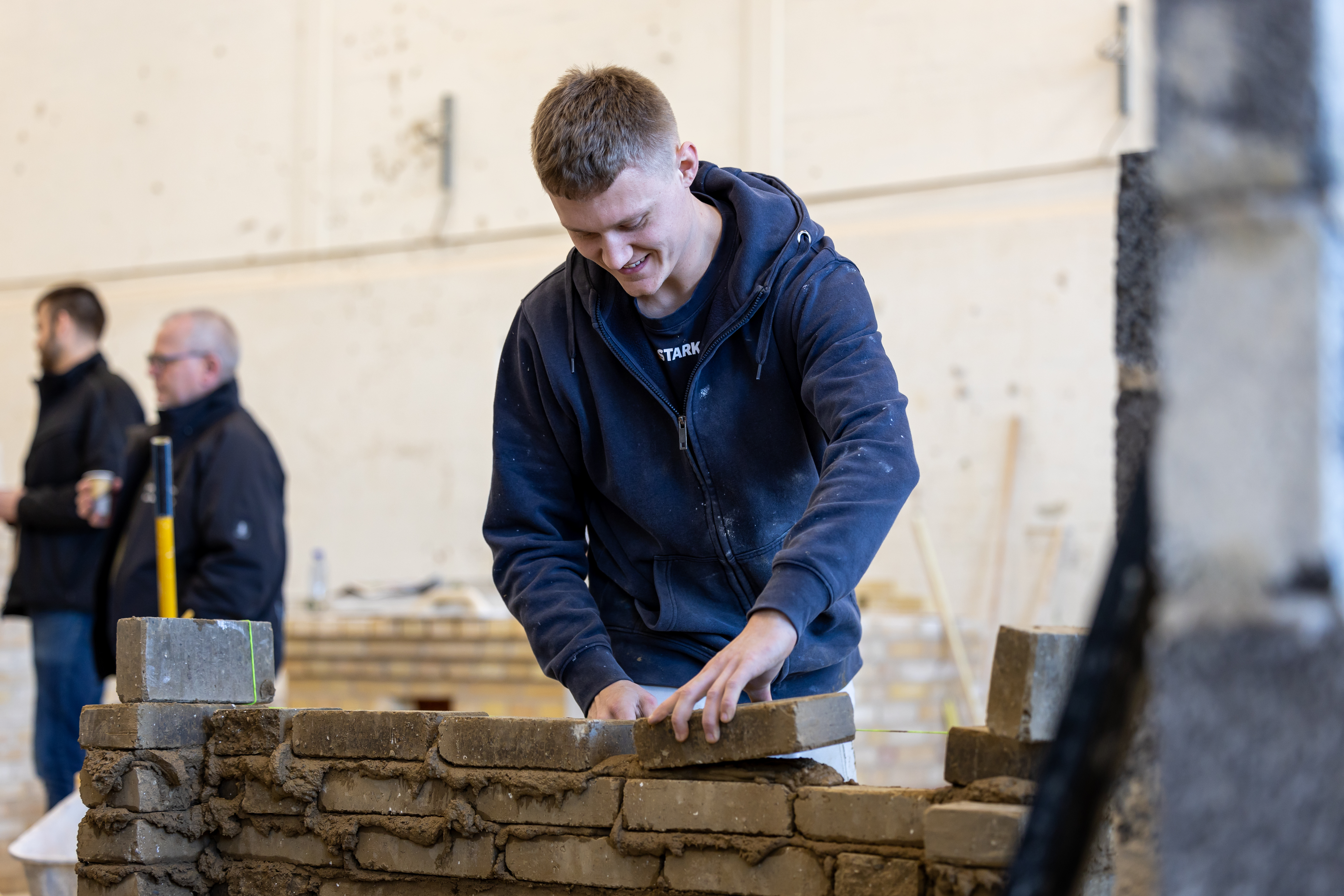 "Det er fedt, at vi prøver at arbejde med lersten på skolen. Det giver forhåbentlig også en fordel, inden man kommer ud og skal bruge det i praksis," siger Jeppe, som er lærling hos Skjern Murerfirma ApS.